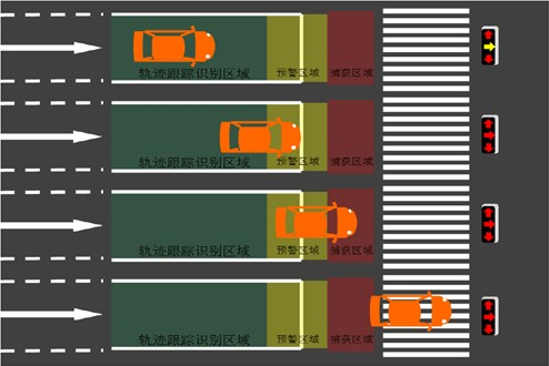 这样的过程保证了如果车辆仅仅压线而没有继续闯红灯,系统将只拍摄一张照片,在后台处理中一张照片将不作为处罚依据。而车辆如果有闯红灯行为,不论车行速度是快还是慢,都能完整的获取闯红灯行为记录的照片。