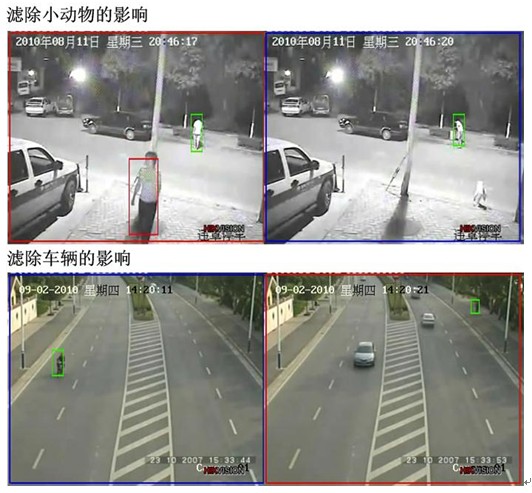 海康威视智能视频分析系统采用创新的智能视频分析(IVS)技术,建立三维化的目标跟踪,能够准确得到视频场景中目标的实际尺寸,有效滤除其他运动物体的影响。